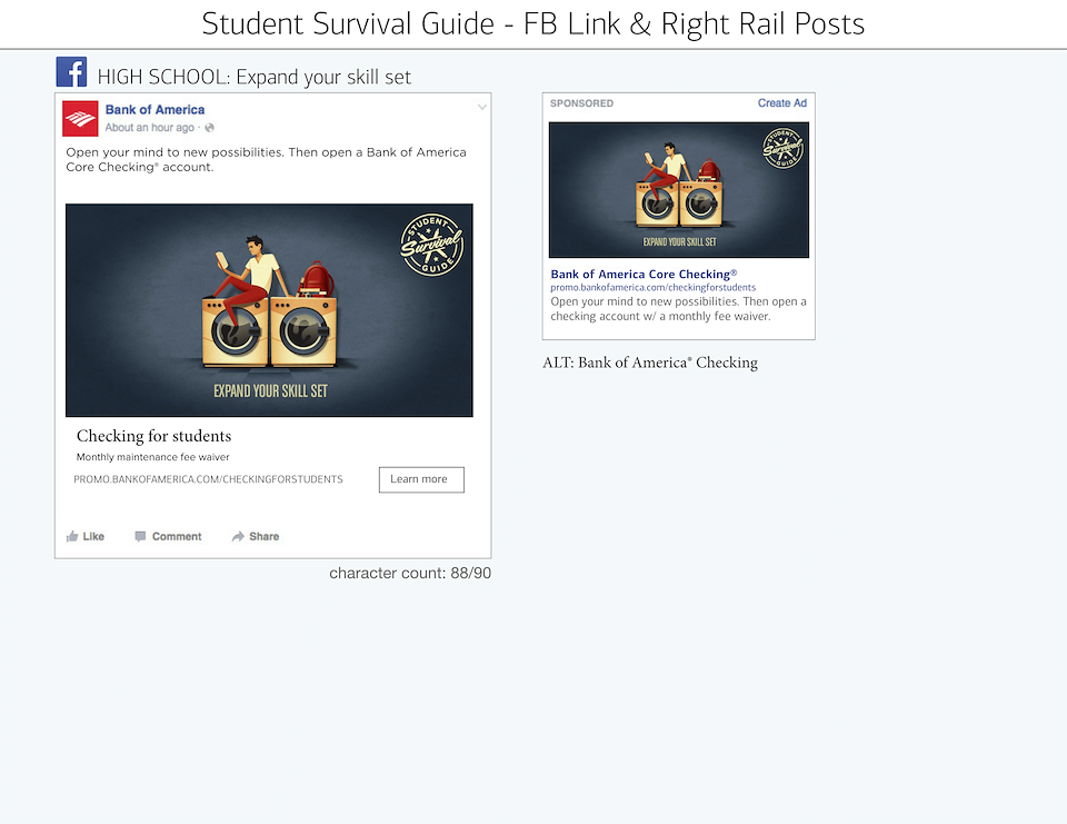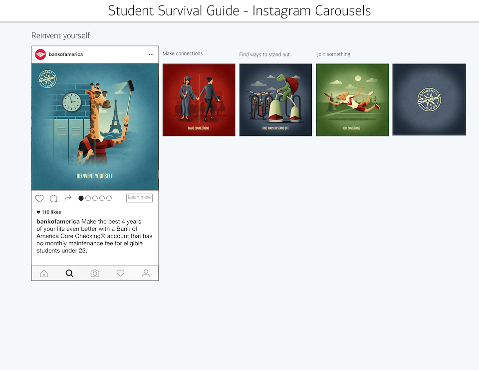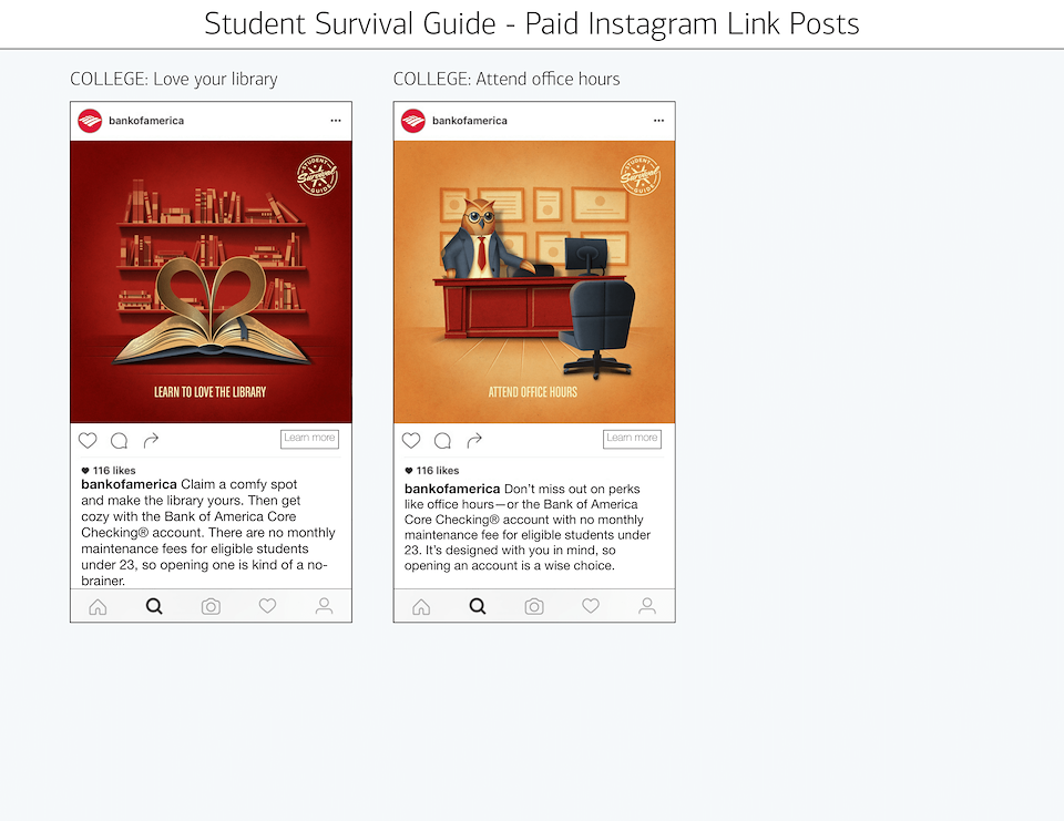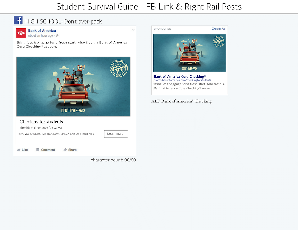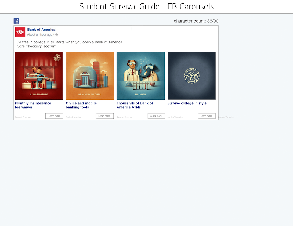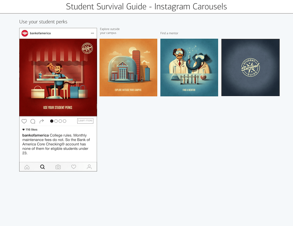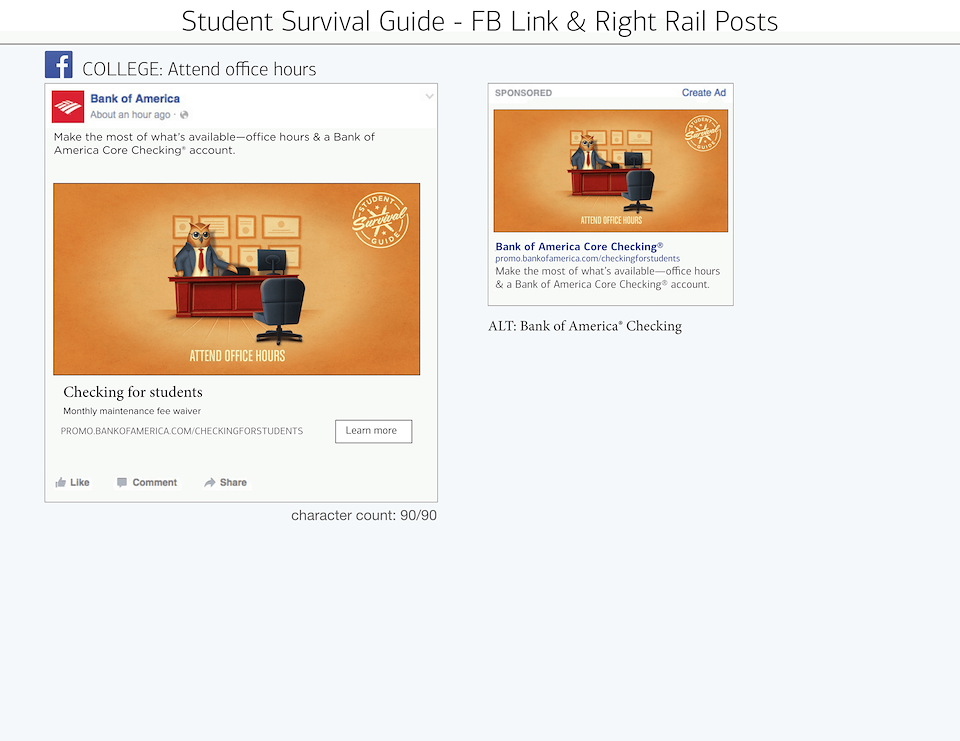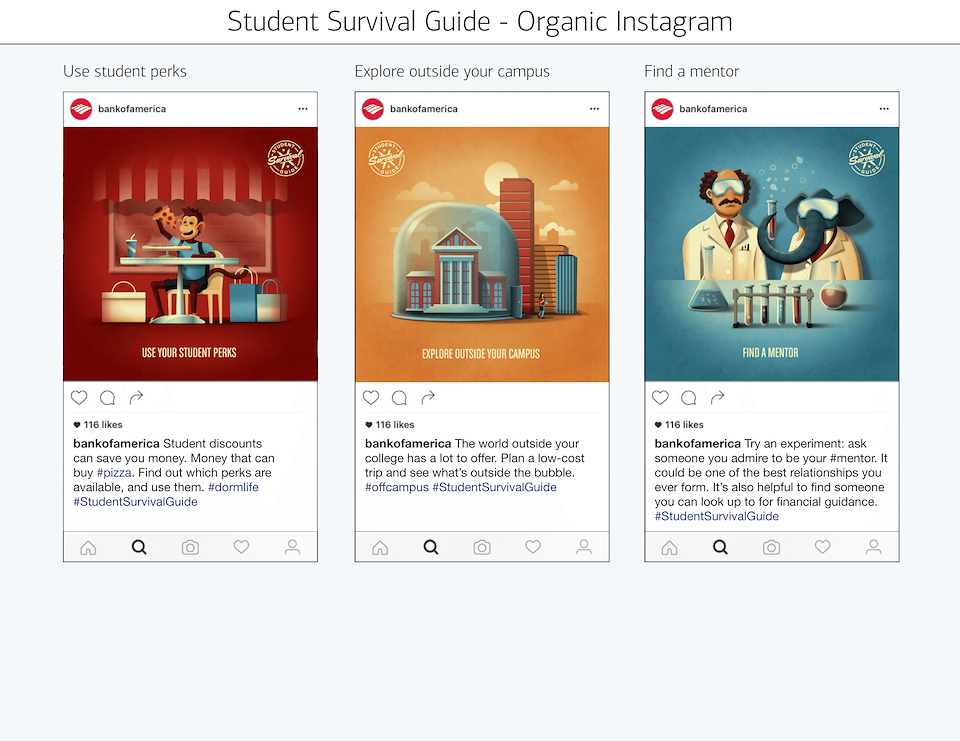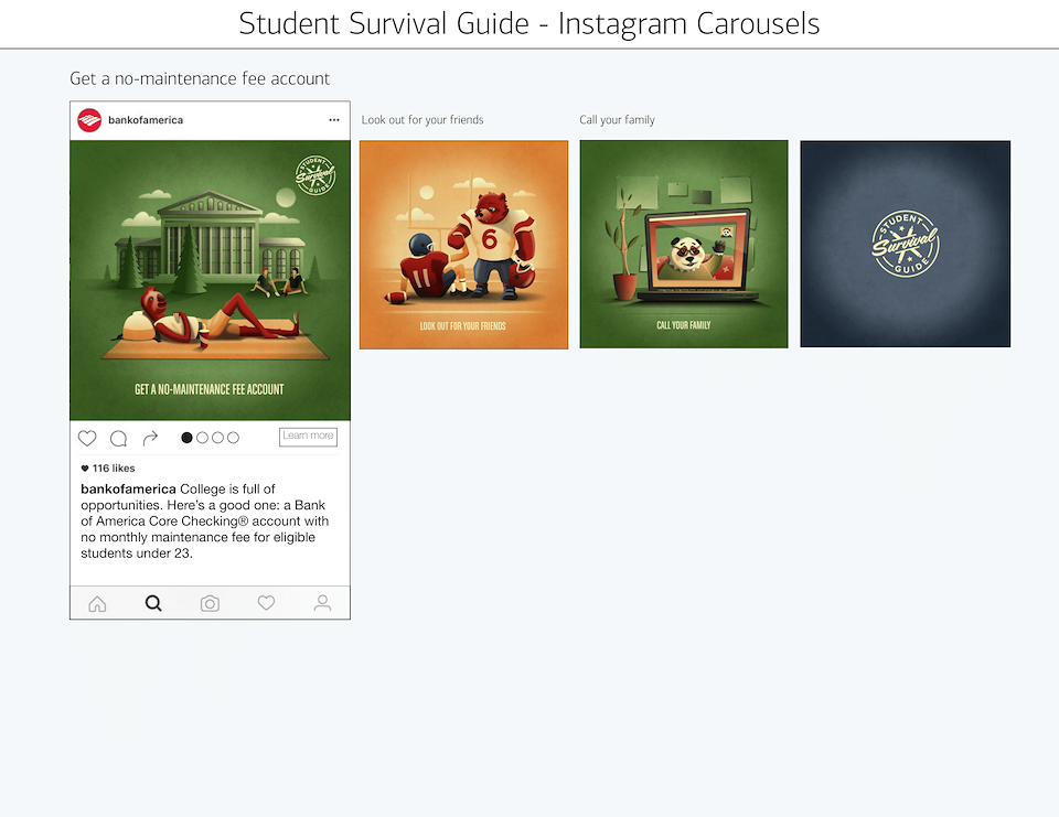 My team and I crafted this campaign from start to finish to promote Bank of America’s checking account for college students. The survival guide theme was inspired by old camping materials, and we worked with a talented illustration team to bring our ideas to life. I learned that you can communicate a message clearly and funly (a word!) even in the face of extremely long legal copy and Twitter character limits.